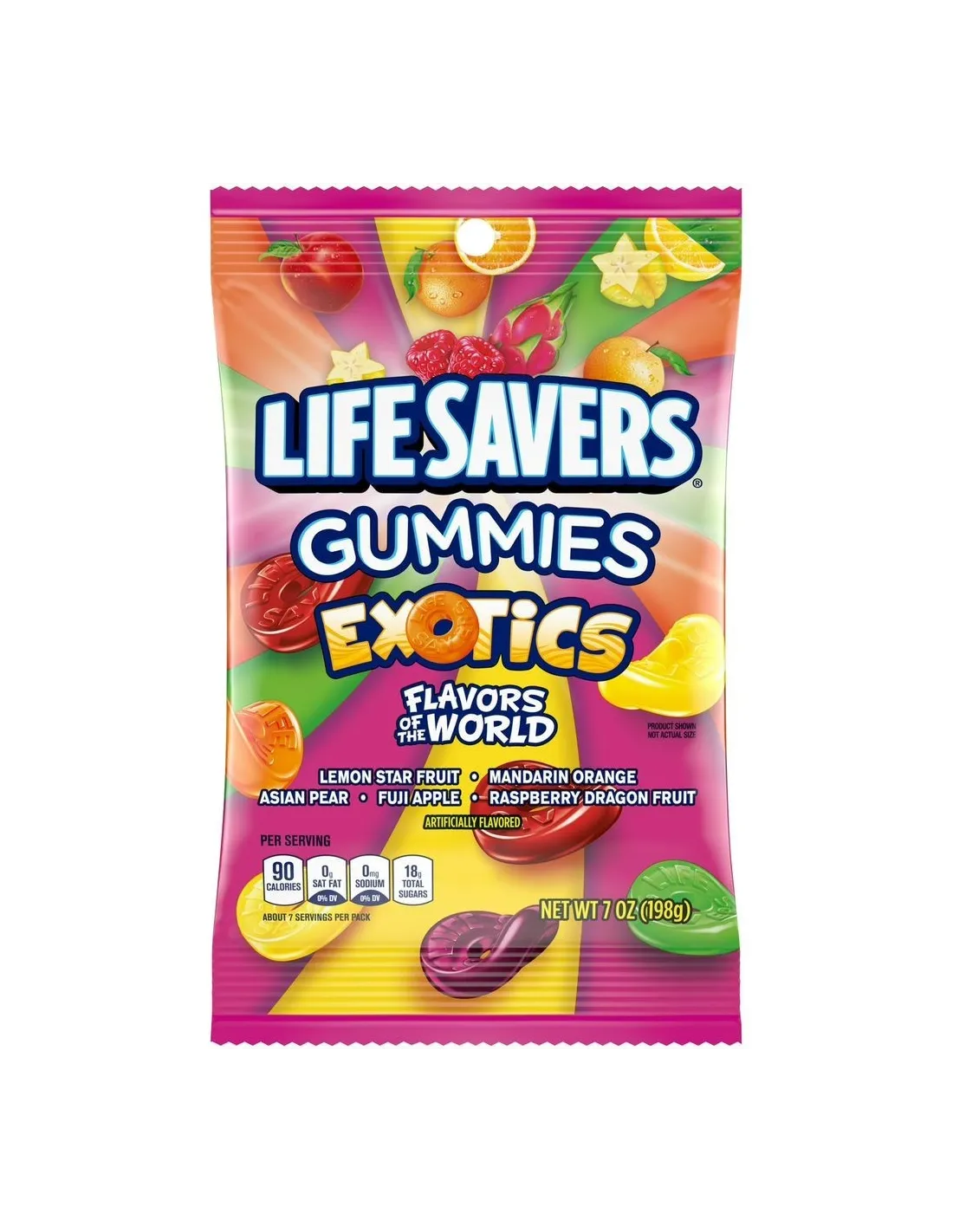 Le Lifesavers Gummies Exotics ti portano in un viaggio tropicale! Morbide, colorate e ultra fruttate, queste iconiche caramelle gommose svelano sapori di luoghi lontani.
