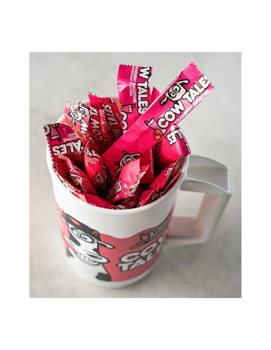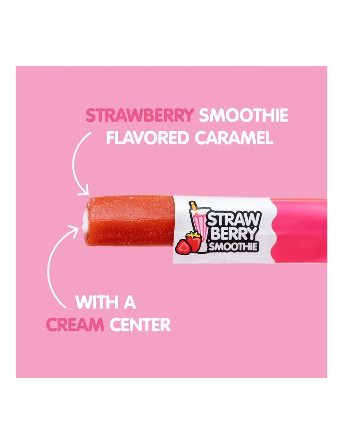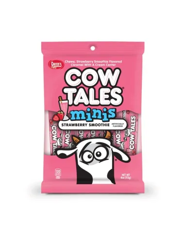 I Cow Tales Minis Strawberry Smoothie catturano tutto il fascino dei Cow Tales originali in un formato mini super pratico... ma con un irresistibile tocco fruttato: un cuore cremoso di milkshake alla fragola . Il risultato: bocconcini teneri, dolci e assolutamente nostalgici che ricordano le migliori caramelle americane da fiere e ristoranti.