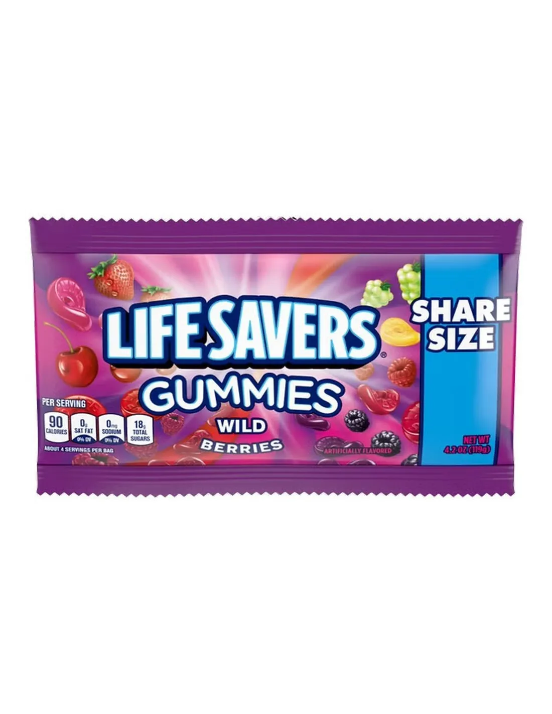 Le caramelle gommose Life Savers Wild Berries Share Size celebrano i frutti di bosco in tutta la loro diversità. Ogni confezione contiene caramelle gommose a forma di anello in sei intensi e deliziosi gusti di frutti di bosco rossi , per un festival di frutti di bosco disponibile tutto l'anno, in qualsiasi stagione.