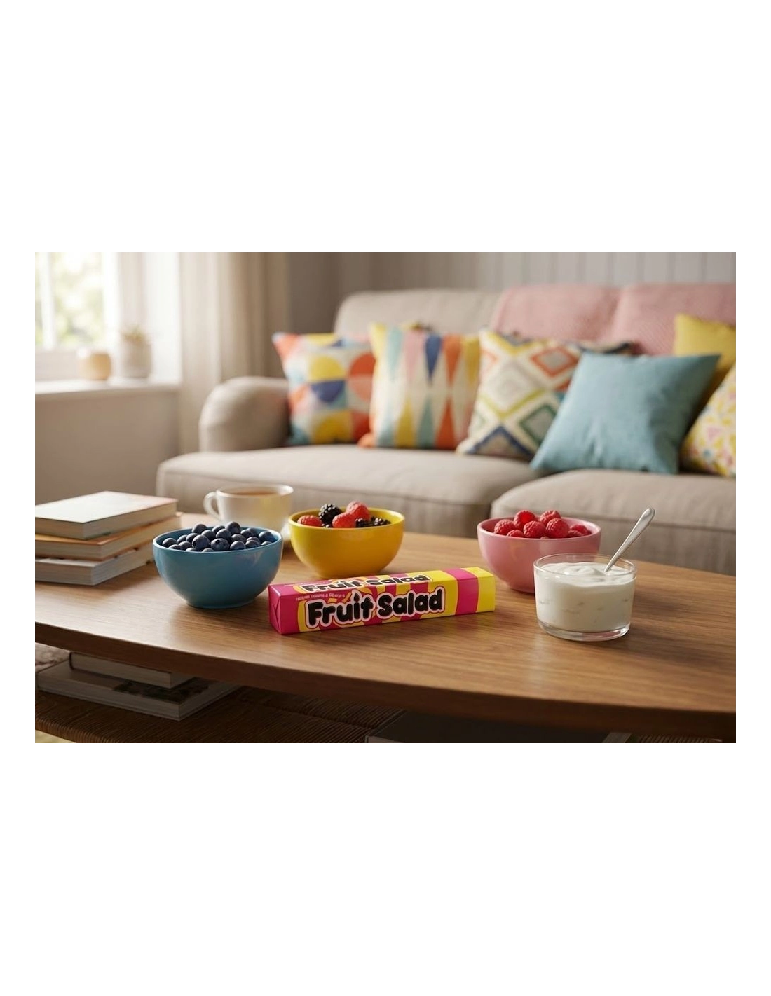 Il formato Stick Pack contiene diverse caramelle incartate singolarmente , perfette da condividere o da tenere in tasca. Questa pratica confezione impedisce alle caramelle di attaccarsi tra loro e ne preserva la freschezza. Le caramelle Fruit Salad sono tradizionalmente vendute insieme alle loro compagne, le Black Jacks (al gusto di anice), un duo inseparabile nella cultura dolciaria britannica.