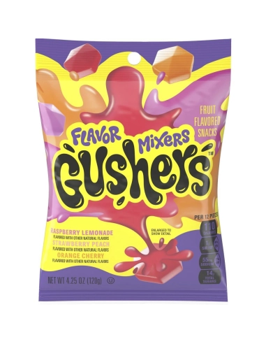 Scopri Gushers Flavor Mixers (120 g) : le famose caramelle americane con un ripieno liquido esplosivo , che combinano miscele di gusti fruttati uniche per un'esperienza di gusto davvero speciale!