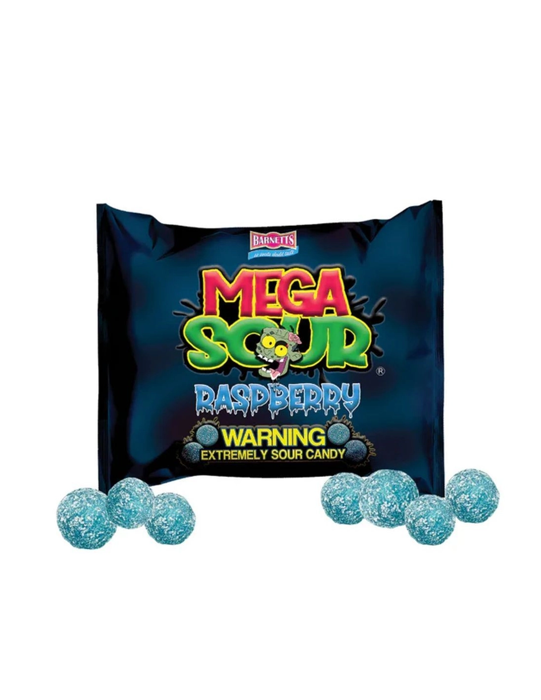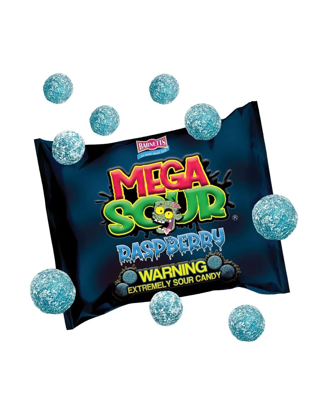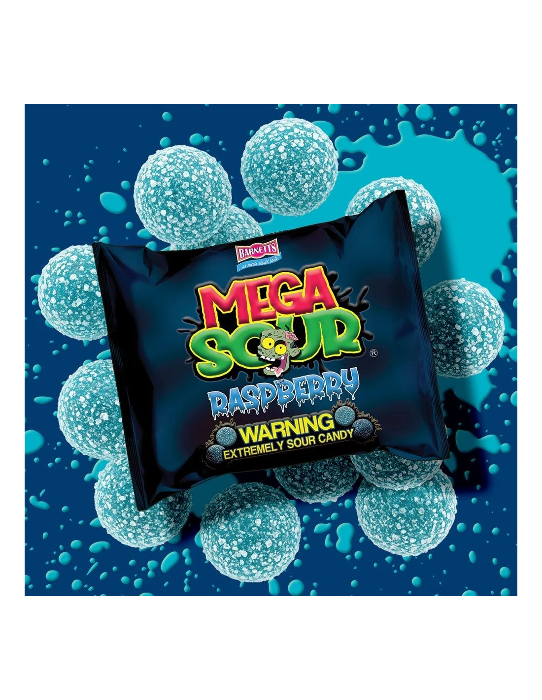 Scopri Barnetts Mega Sour Raspberry : caramelle artigianali al lampone blu che offrono un'acidità vulcanica e un colore elettrico.