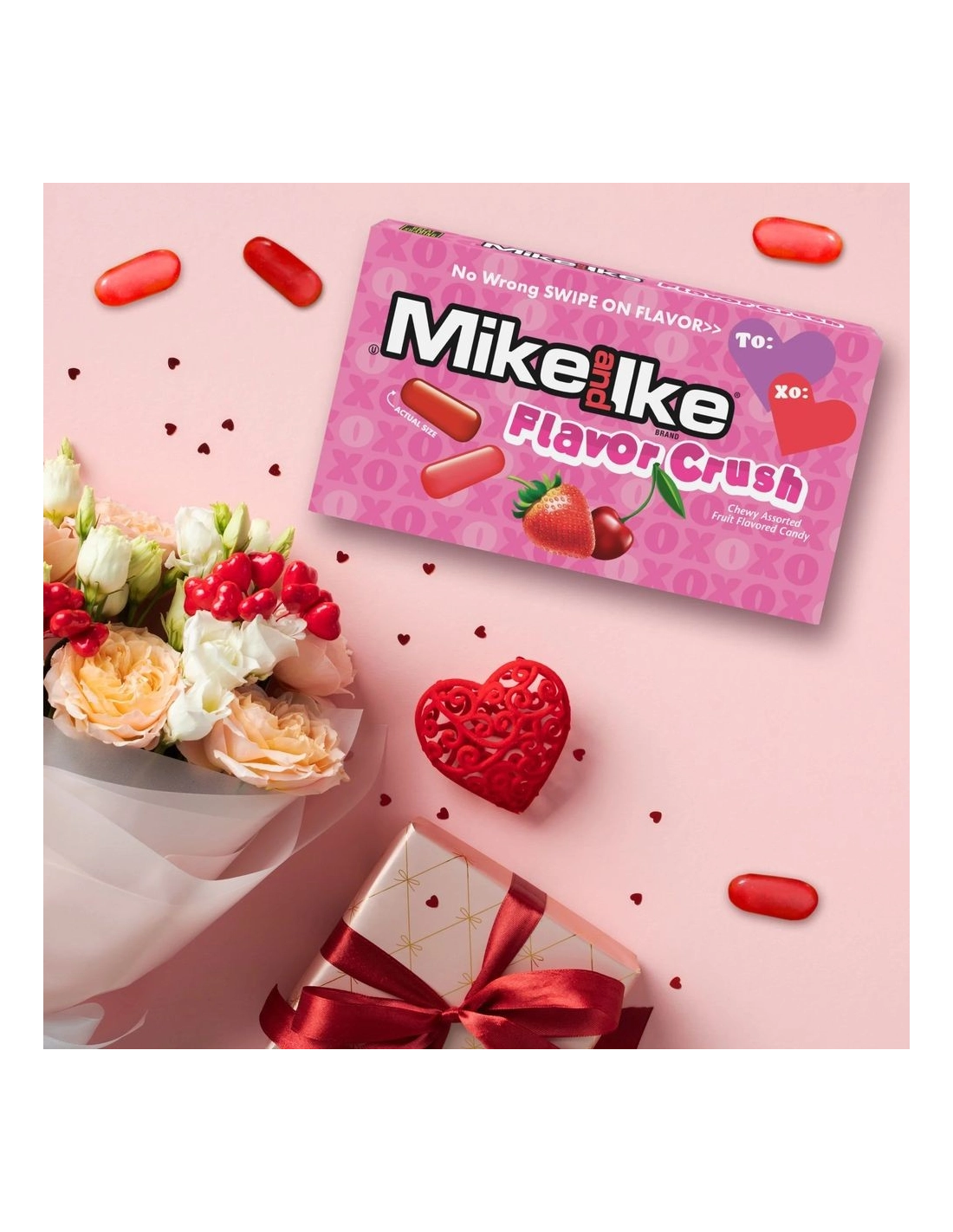Lasciatevi conquistare da questa edizione davvero speciale: Mike and Ike Flavor Crush ! Originariamente pensata come esclusiva per San Valentino negli Stati Uniti, questa piccola scatola dal look romantico ("Crush") è diventata un vero gioiello ambito da tutti i collezionisti di caramelle americani.