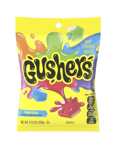 Scopri Gushers Tropical (120g) : le famose caramelle americane con un esplosivo ripieno liquido , disponibili in un irresistibile mix di gusti di frutta esotica per un viaggio gustativo unico!