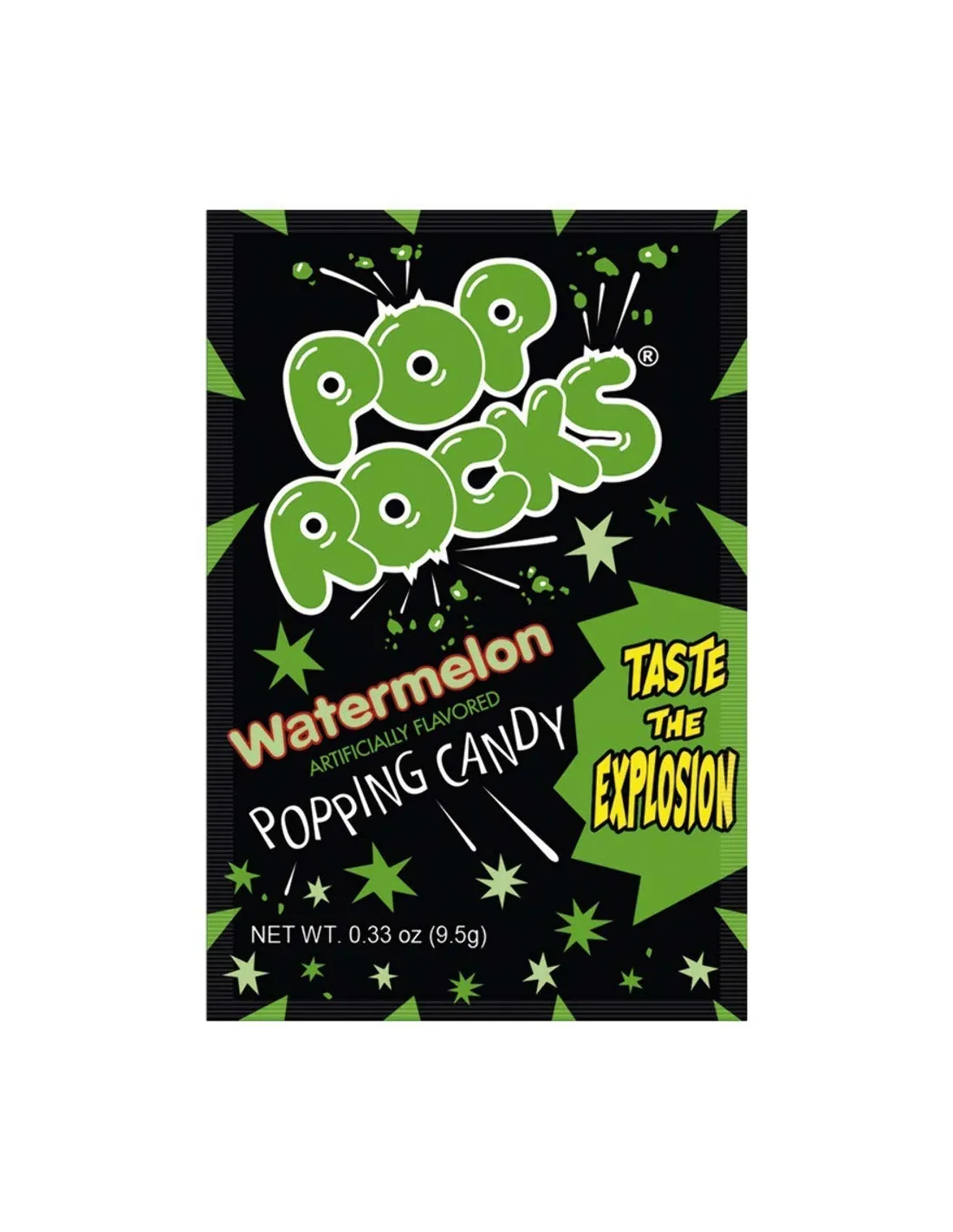 Le Watermelon Pop Rocks sono piccole caramelle a forma di mini cristalli al gusto di anguria che esplodono non appena inizi a metterle in bocca. Esplode, scintilla, il gusto irrompe all'improvviso in bocca per un attimo di piacere che per i più grandi vi riporterà all'infanzia.