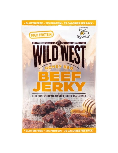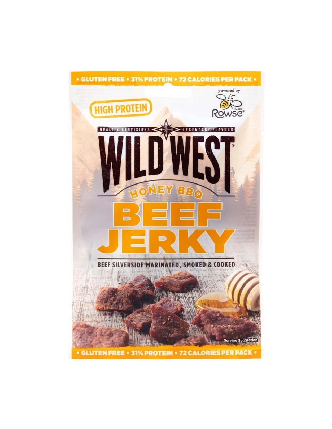 Wild West Beef Jerky Honey BBQ è ricco di proteine, povero di grassi, ideale per consumare un piccolo spuntino in qualsiasi momento della giornata per ricaricare le batterie o semplicemente per divertirsi. Questi piccoli sacchetti di carne secca sono perfetti per sopprimere l'appetito.