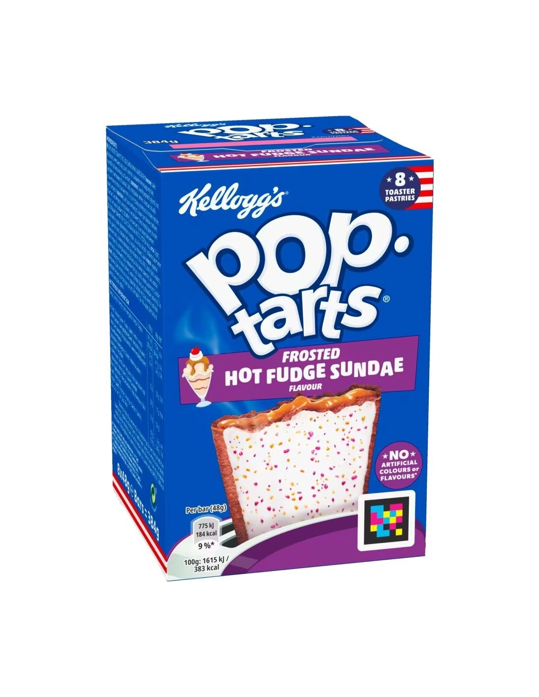 La tortina POP TARTS HOT FUDGE SUNDAE è una miscela di gusti di gelato, cioccolato, vaniglia e pepite dolci multicolori per una buona dose di indulgenza.