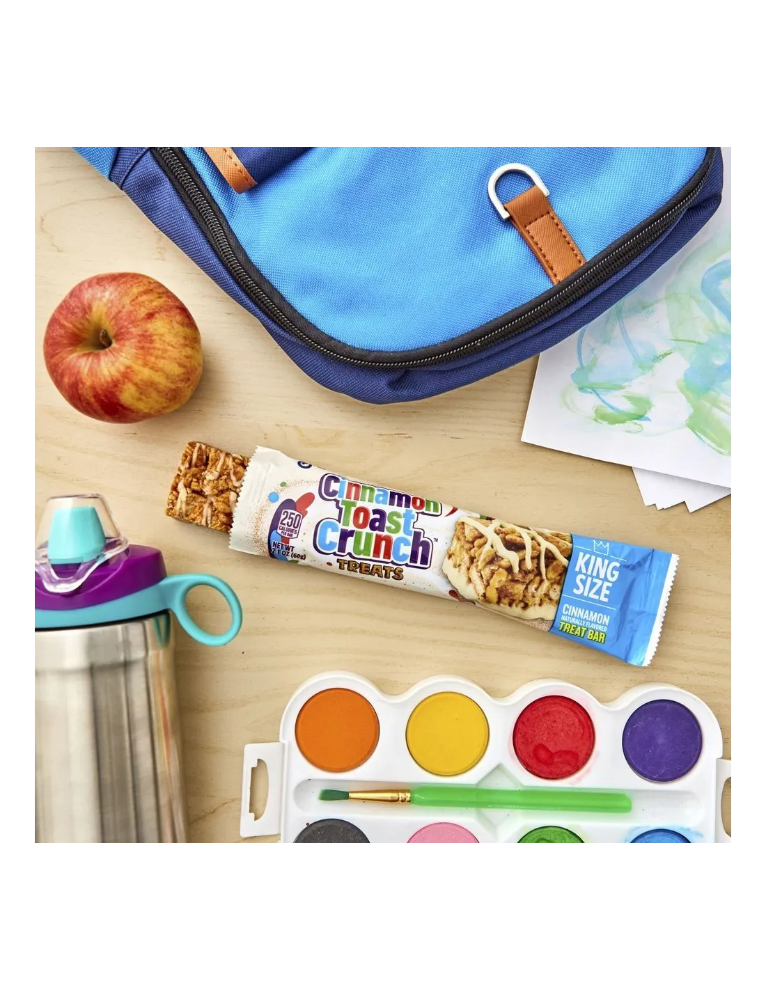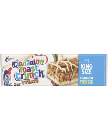 La Cinnamon Toast Crunch Treats Bar King Size è una barretta di cereali ispirata ai famosi cereali americani alla cannella e zucchero . Un generoso formato King Size , dalla consistenza croccante e gommosa , offre tutto il gusto irresistibile dell'iconica colazione, trasformato in un comodo spuntino da portare con sé.