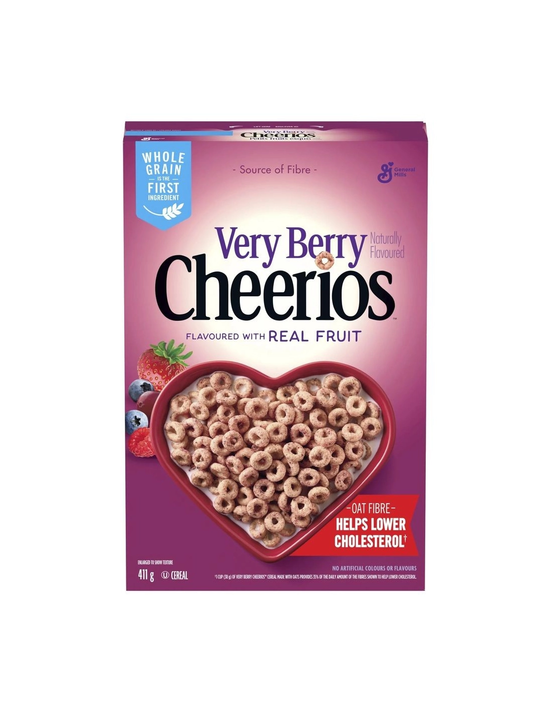 Anche i cereali americani Cheerios Very Berry sono noti per aiutare a ridurre il colesterolo e il rischio di malattie cardiache se utilizzati insieme a una dieta povera di grassi saturi.