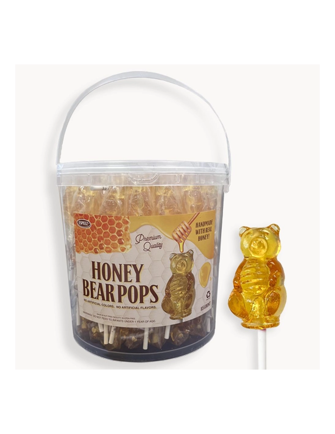 Fai il pieno di dolcezza con l'irresistibile lecca-lecca Espeez Honey Bear Pops ! Con la sua adorabile forma a orsetto , ispirata alle famose bottiglie di miele americane, questa caramella dal sapore vintage delizierà gli amanti dei dolci tradizionali. Lasciati conquistare dal suo delizioso, naturale, caldo e avvolgente sapore di miele puro . Il tocco perfetto di magia d'altri tempi per addolcire la tua giornata!