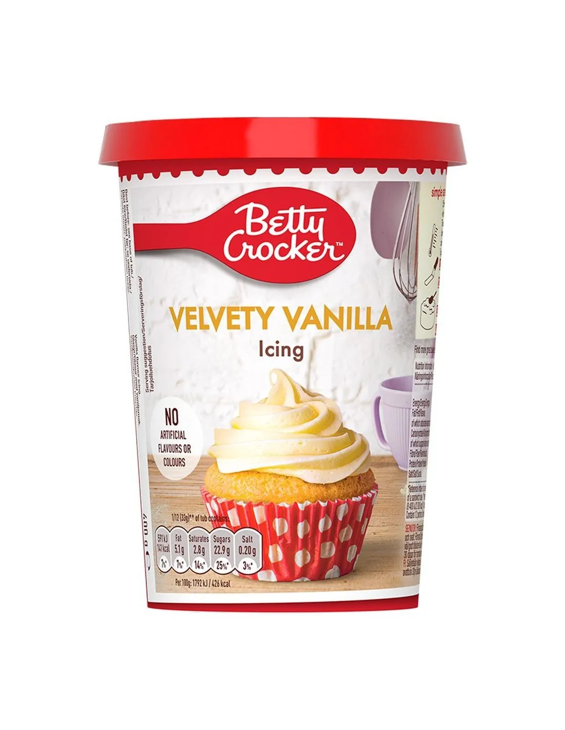 Per ottenere il risultato perfetto per la vostra torta americana vi servirà la glassa vellutata alla vaniglia Betty Crocker. Questa glassa tipicamente americana è realizzata con una deliziosa crema alla vaniglia. È il tocco finale perfetto per tutte le tue preparazioni.