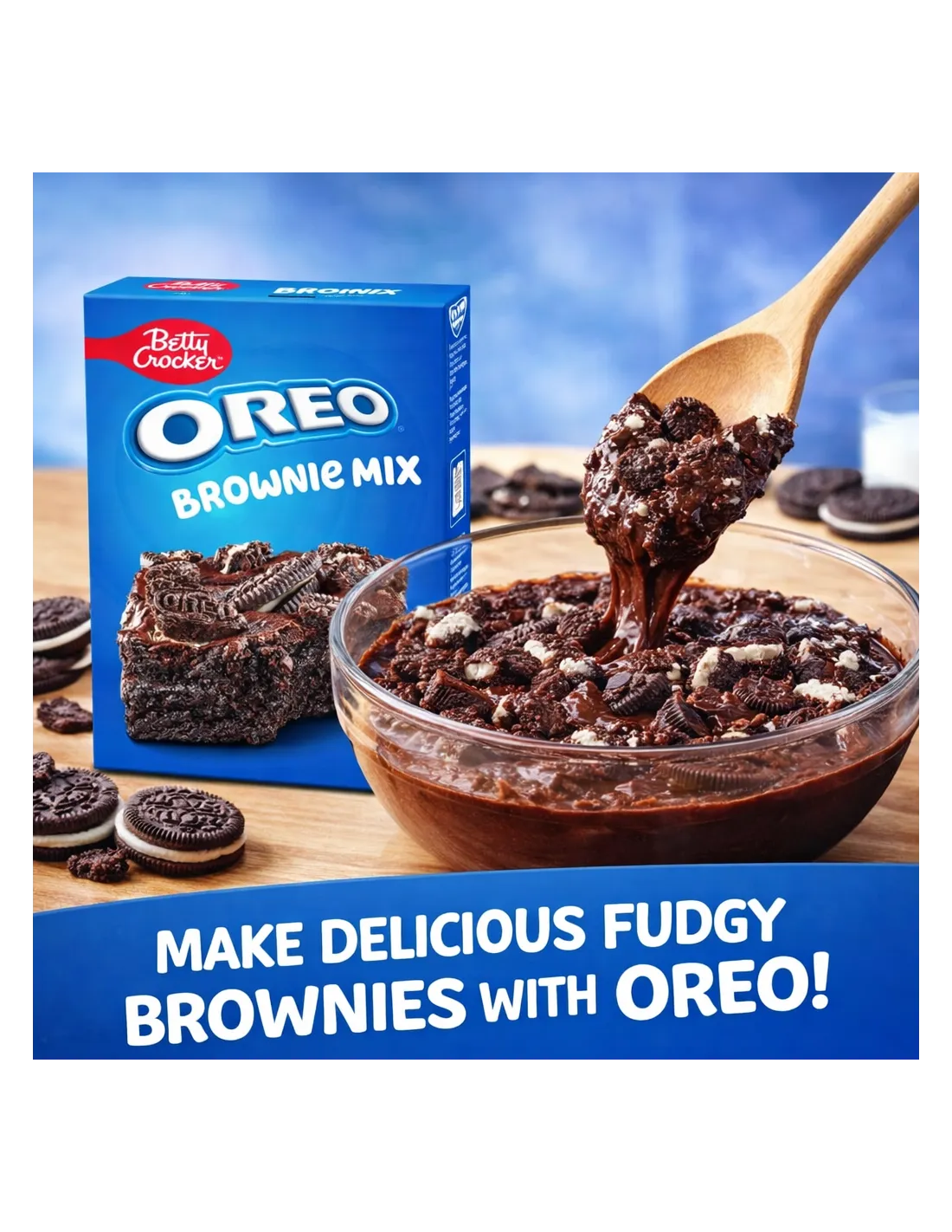 Il preparato per brownie Oreo di Betty Crocker unisce un brownie ricco e fondente a veri pezzetti di Oreo croccanti .