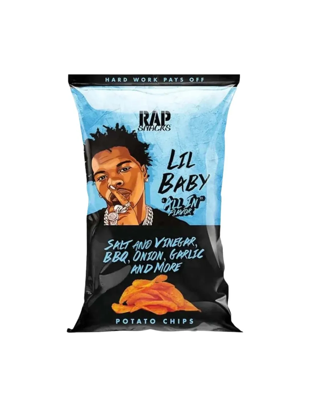 Confezionate in sacchetti singoli, queste patatine croccanti sono ideali per uno spuntino divertente e originale, da condividere con gli amici, da gustare durante un concerto o semplicemente per scoprire il mondo degli snack rap. Più di un semplice sacchetto di patatine, è un'esperienza di cultura pop a sé stante.