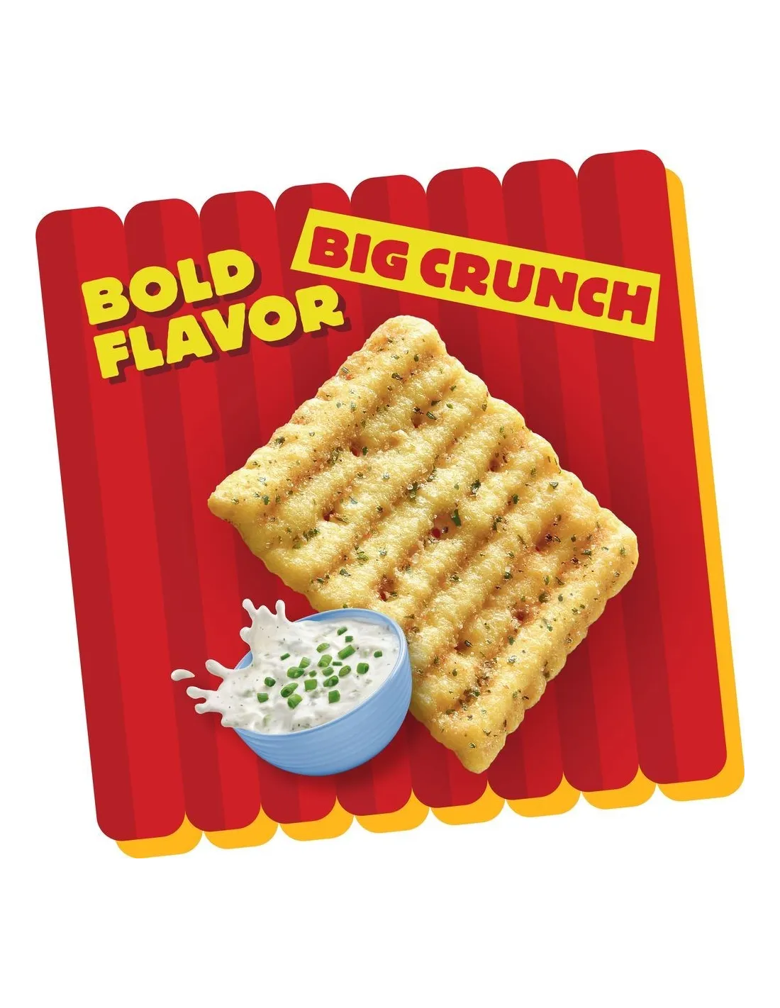 Il sapore combina la cremosità del cheddar con il sapore aromatico del ranch piccante (erbe aromatiche e spezie) per uno spuntino saporito e audace. Questi cracker sono perfetti come spuntino, per soddisfare una voglia di salato o da condividere in un'occasione conviviale.