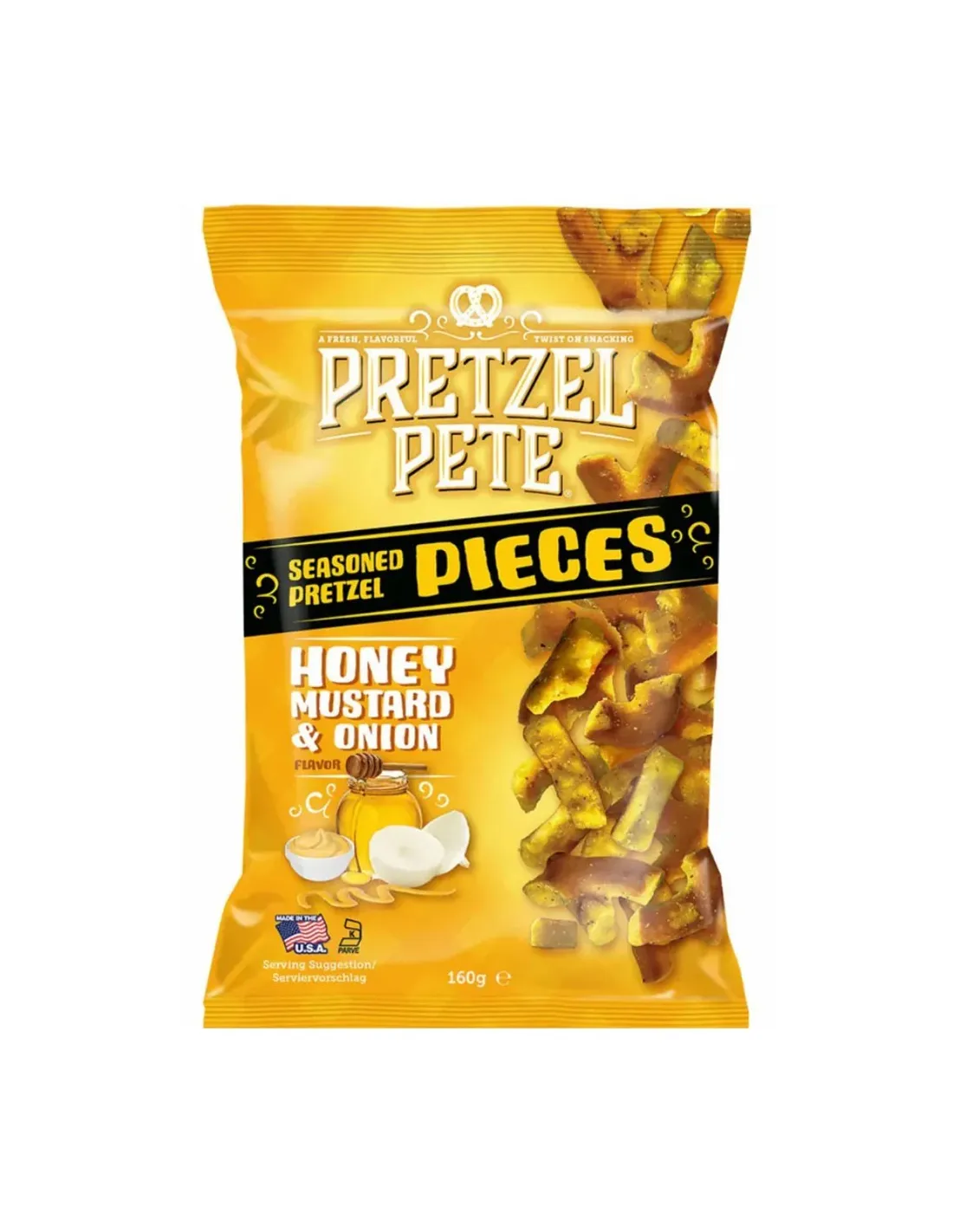 Scopri il perfetto equilibrio tra dolce, salato e piccante con i Pretzel Pete Pieces Honey, Mustard & Onion !