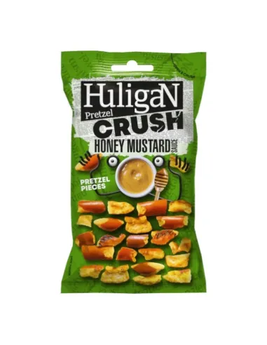 Scopri lo snack americano che tutti amano: HuligaN Pretzel Crush Honey Mustard Sauce , croccanti pezzi di pretzel ricoperti da un'irresistibile panatura dolce e salata !