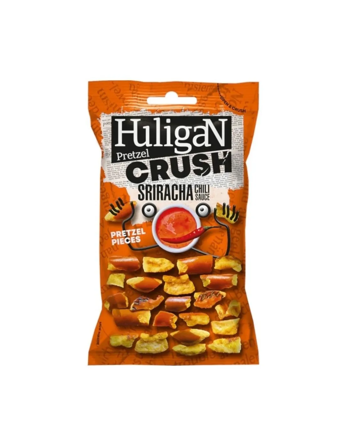 HuligaN Pretzel Crush Sriracha è lo snack perfetto per gli amanti delle emozioni forti! Pretzel croccanti con un sapore piccante e aspro di Sriracha, per uno snack in stile americano esplosivo e divertente.