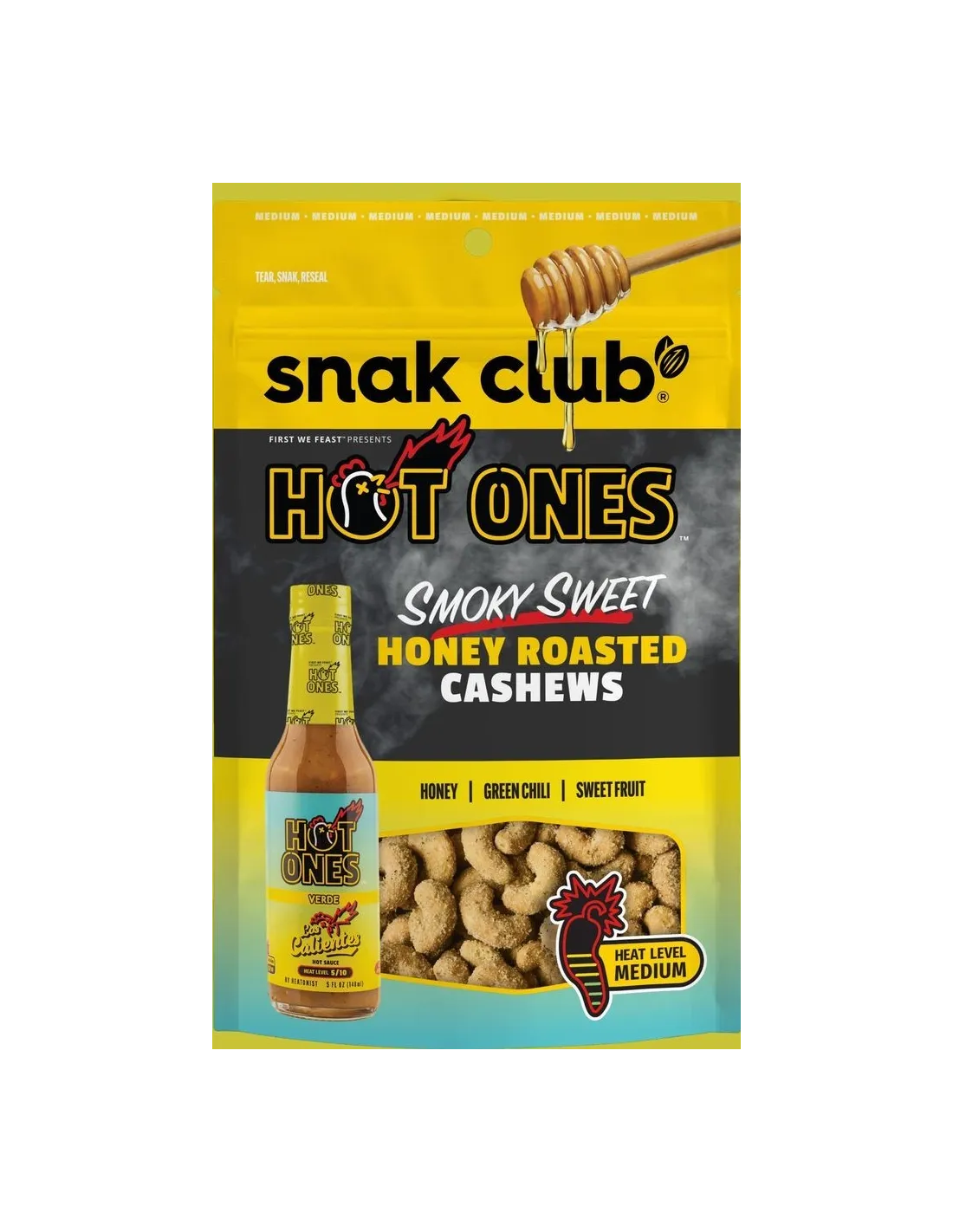 Gli anacardi tostati al miele e affumicati Hot Ones di Snak Club sono nati da una collaborazione esplosiva tra Snak Club e l'universo cult di Hot Ones , lo show che fa sudare celebrità e star con le salse piccanti.