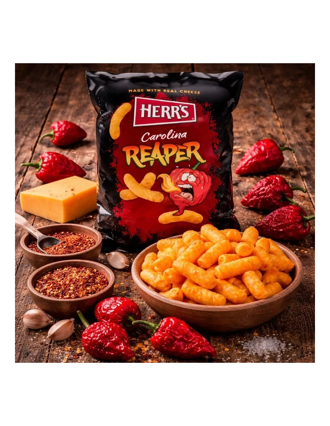 Il peperoncino più piccante del mondo, il Carolina Reaper, vi inonderà il palato di una ventata di calore! Abbinato al delizioso sapore del formaggio, il Carolina Reaper da 70 g di Herr's aggiungerà un tocco piccante alla vostra vita!