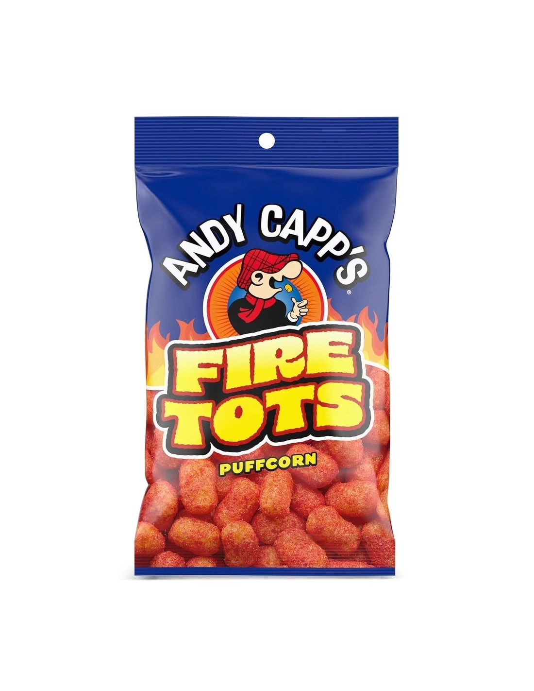 Il massimo del gusto in una nuvola di dolcezza! Probabilmente conoscete i leggendari snack salati di Andy Capp ? Preparatevi a scoprire la loro ultima, folle creazione: i Fire Tots Puffcorn di Andy Capp . Questi piccoli bocconcini gonfi hanno la stessa forma tondeggiante delle famose crocchette di patate americane (i famosi tater tots ), ma sono in realtà fatti di mais estruso incredibilmente leggero.