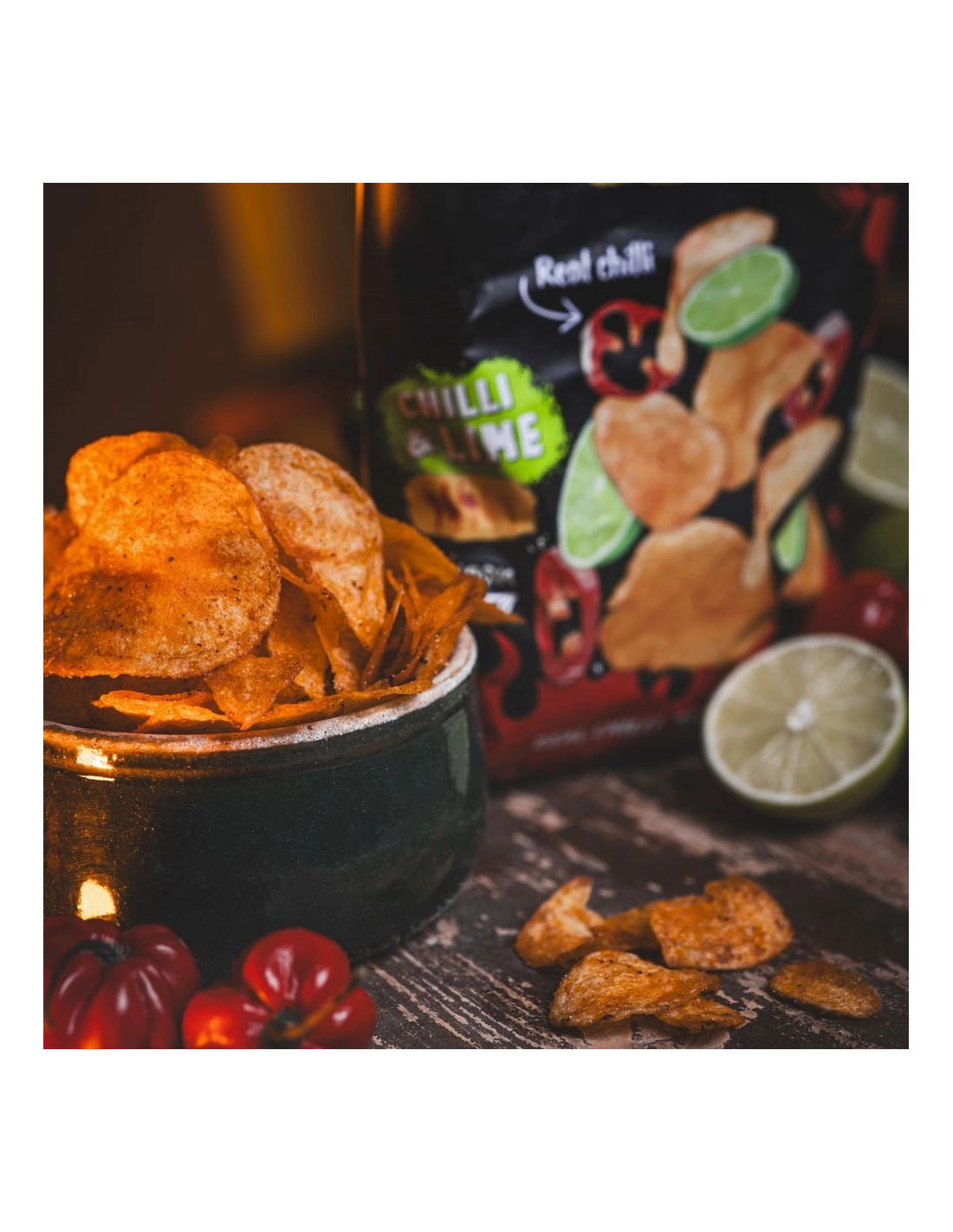 L'abbinamento di peperoncino e lime è una vera e propria istituzione nella cultura degli snack messicani e americani. Queste chips spesse e ultra croccanti offrono un'esplosione di sapore vivace e acidulo grazie alla scorza di lime, immediatamente seguita dal calore avvolgente e piccante del peperoncino. È questo perfetto contrasto caldo/freddo che rende ogni morso assolutamente irresistibile.