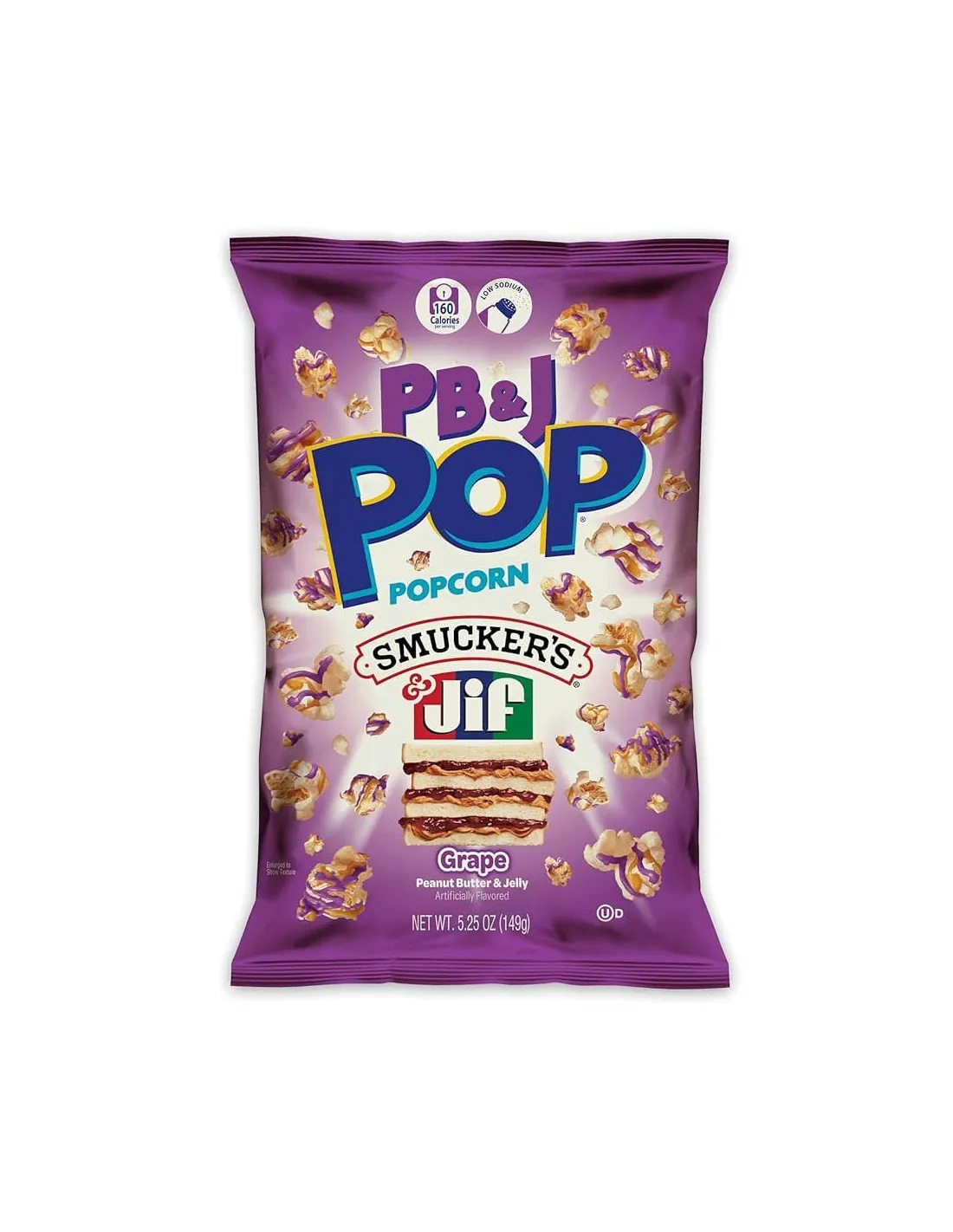 Lo spuntino perfetto da gustare durante il giorno, la grande confezione da 149 g di popcorn Smuckers Jif Peanut Butter Grape PB&J Pop delizierà tutta la famiglia, che stiate guardando un film o meno!