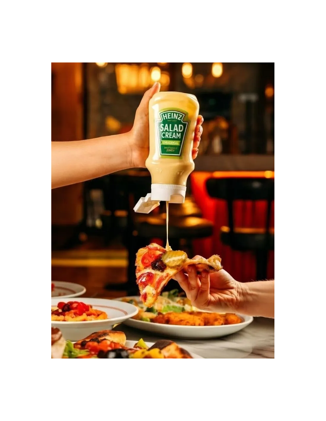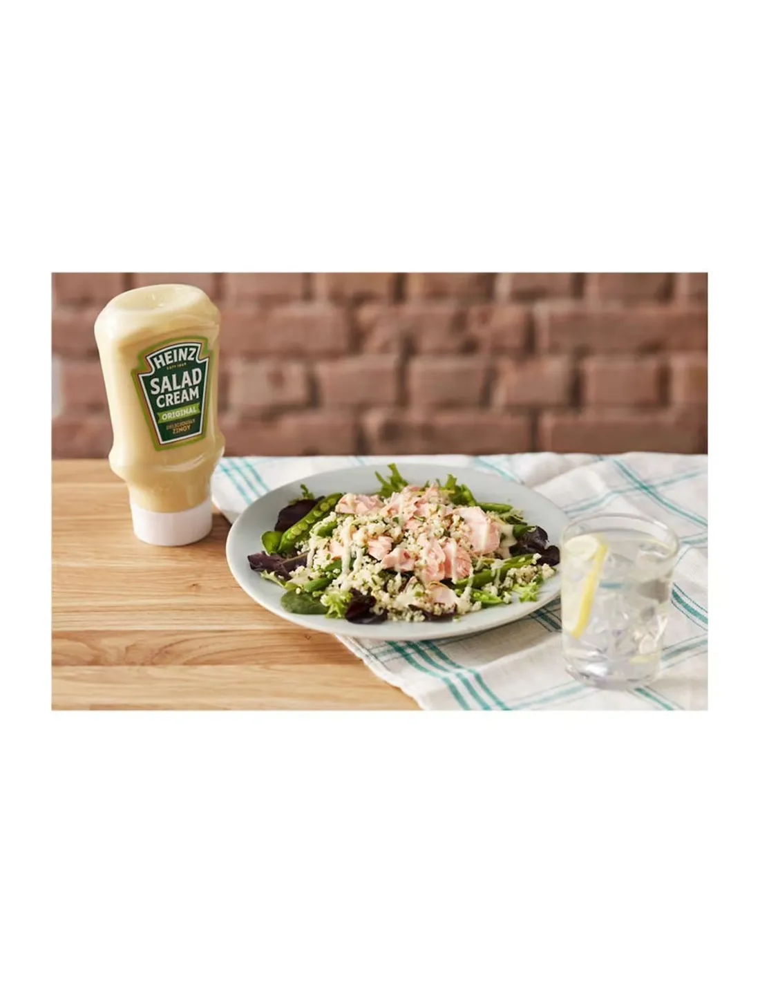 La salsa Heinz Salad Cream occupa un posto speciale nel cuore degli inglesi. Questo condimento giallo paglierino è nettamente diverso dalla maionese, con la sua consistenza più leggera , il sapore più aspro e la composizione unica di aceto , olio vegetale , tuorli d'uovo , senape e zucchero . È la salsa che evoca immediatamente i picnic inglesi e i pranzi domenicali in famiglia .