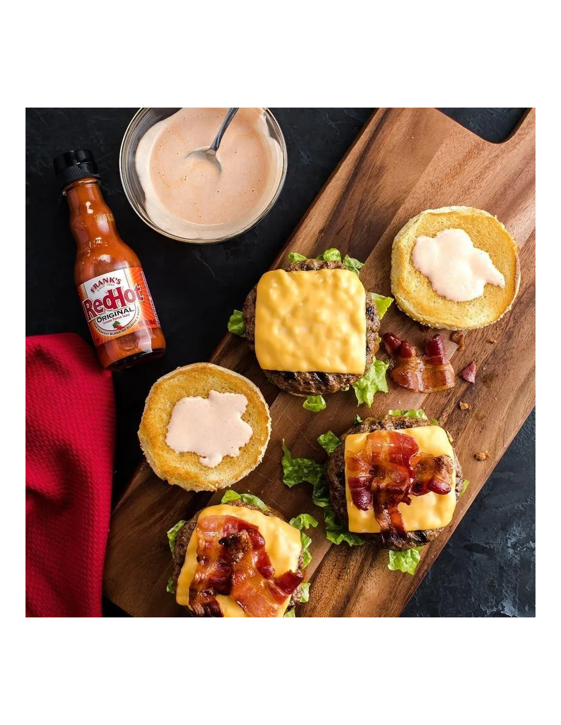 Questa salsa è l'ingrediente essenziale per preparare autentiche Buffalo Wings , ma i suoi utilizzi non si fermano qui. Esalta hamburger , tacos , uova strapazzate , pizze , maccheroni al formaggio e persino Bloody Mary . Bastano poche gocce per trasformare qualsiasi piatto in un'esperienza piccante americana.
