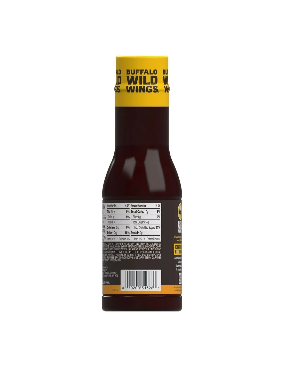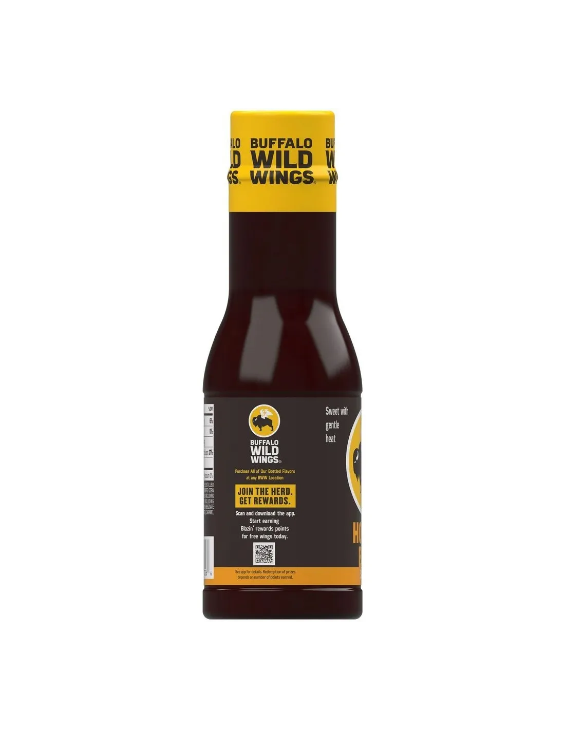La salsa BBQ Buffalo Wild Wings Honey porta il sapore autentico del famoso bar sportivo americano direttamente a casa tua. Questa salsa unisce la dolcezza del miele e della melassa al delicato sapore piccante di chipotle, jalapeño e peperoncini ancho , il tutto esaltato da un naturale aroma affumicato. Dolce con un tocco piccante sul finale: l'equilibrio perfetto per alette di pollo, costine e stuzzichini .