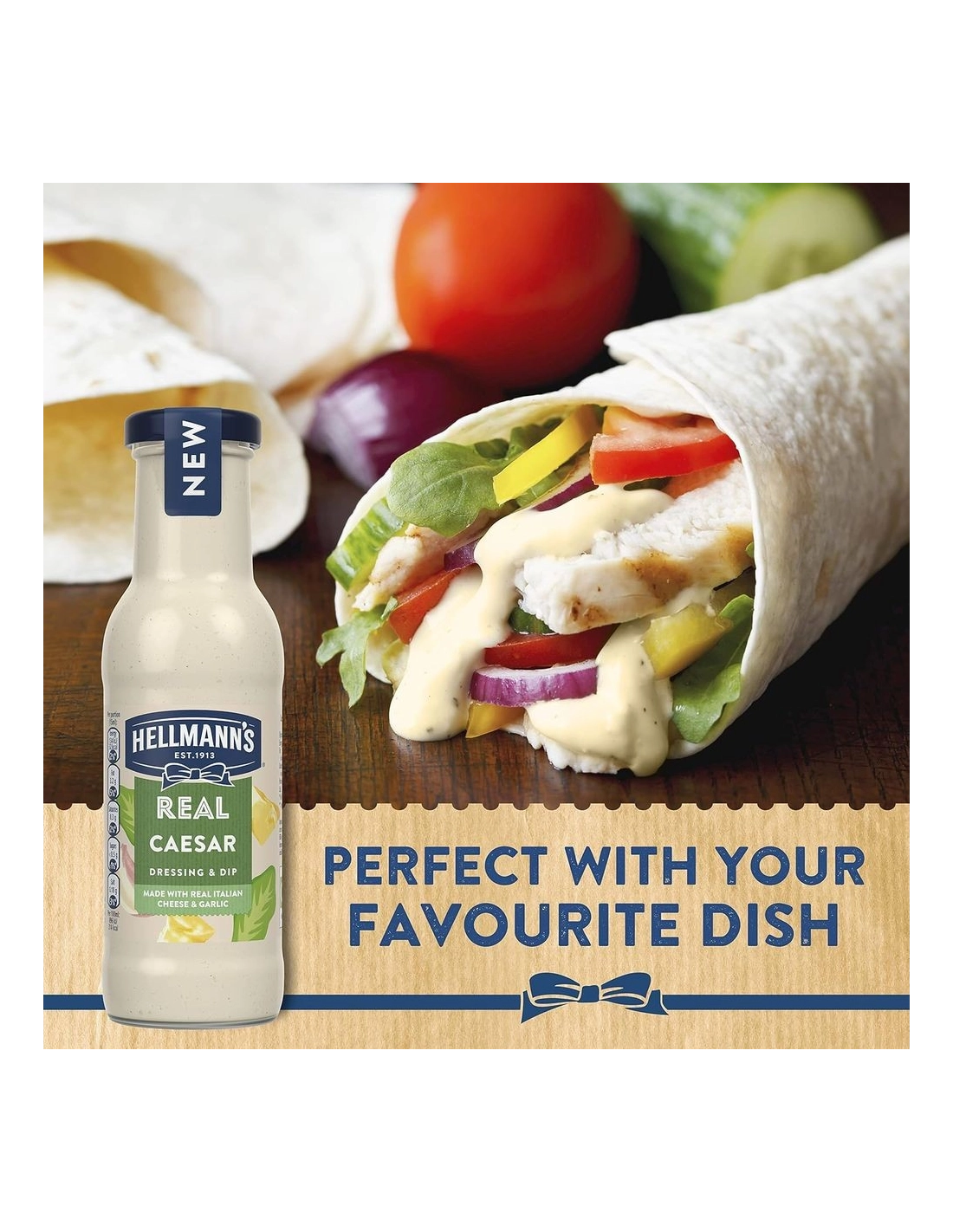 Preparatevi ad assaggiare la regina dei condimenti per insalata! Con Hellmann's Real Caesar Dressing & Dip , il celebre marchio Hellmann's (una vera istituzione negli USA per la sua leggendaria maionese) vi propone la sua magistrale versione del condimento Caesar .
