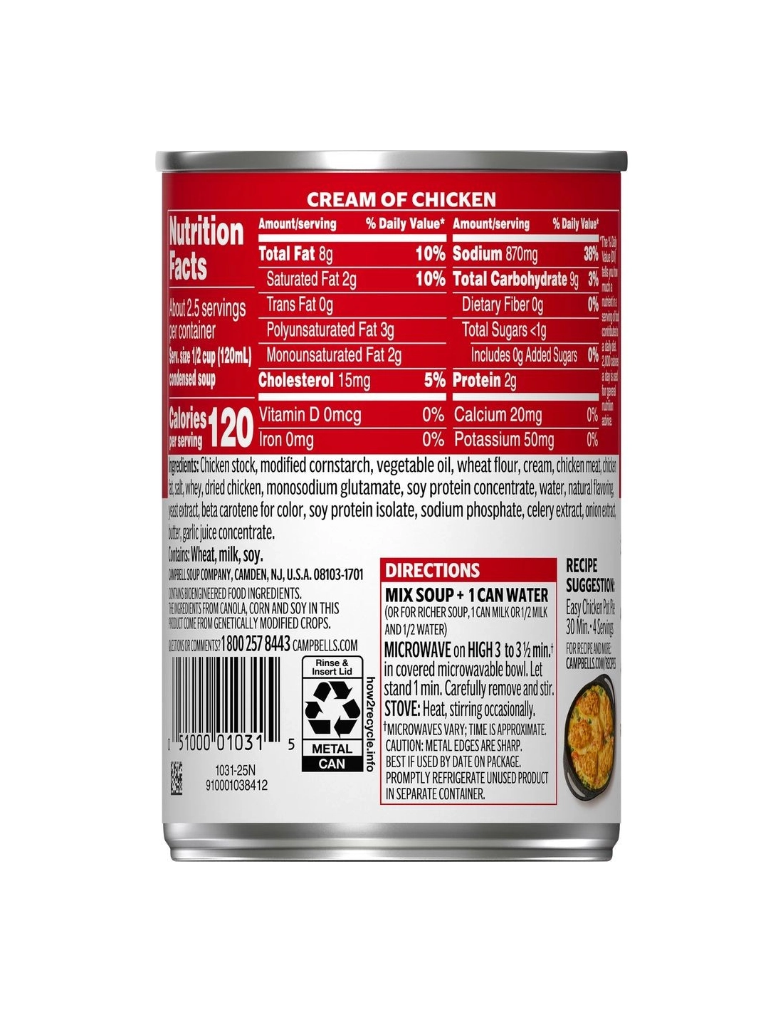 Scopri la vera Campbell's Cream of Chicken : l'essenziale e originale zuppa di pollo cremosa americana, ideale per un pasto confortante o come ingrediente segreto nelle tue migliori ricette statunitensi.