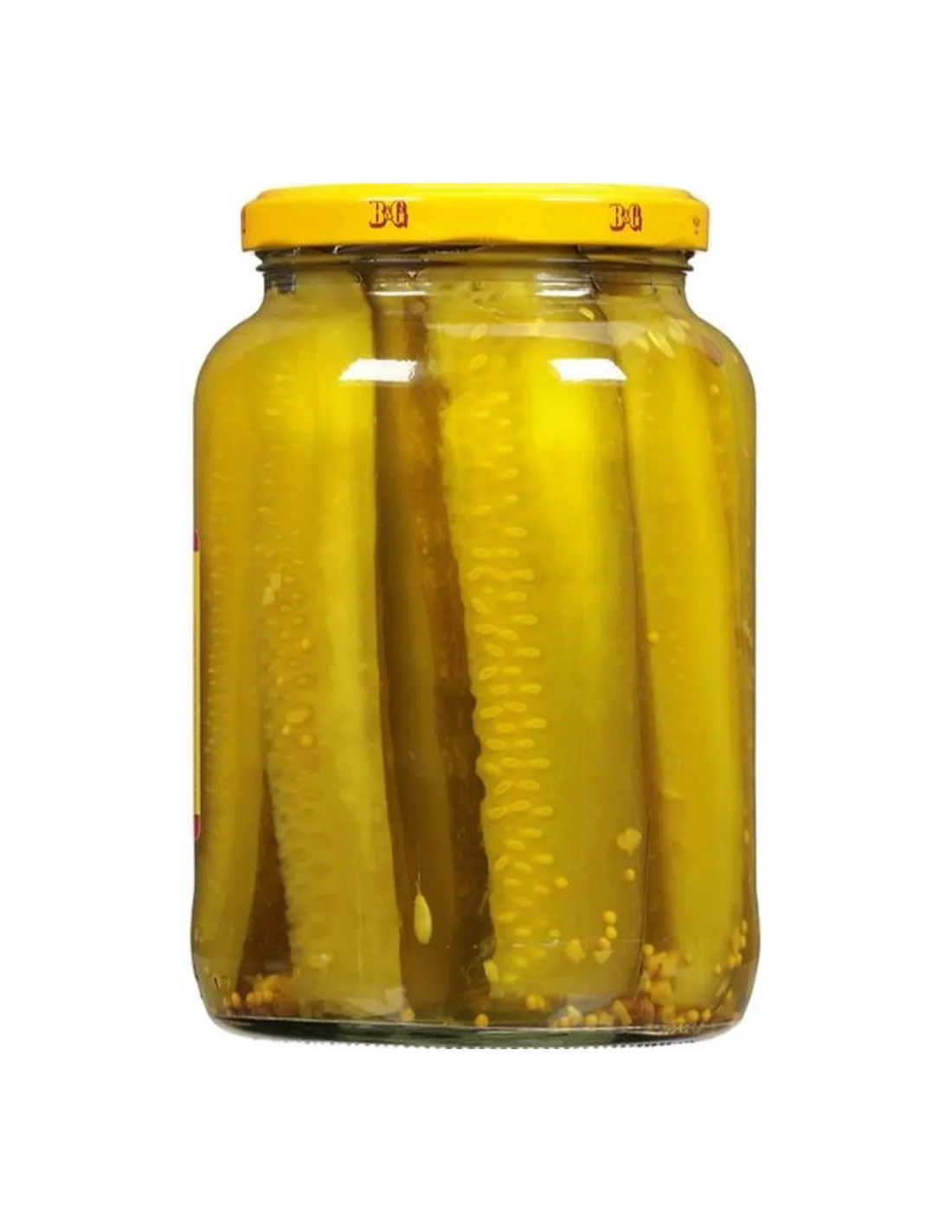 I cetriolini all'aneto Kosher B&G sono cetriolini all'aneto in stile americano , tagliati a spicchi e marinati secondo una ricetta tradizionale kosher . La loro consistenza croccante e il sapore aspro e aromatico li rendono l'accompagnamento perfetto per hamburger, panini e antipasti. Vasetto capiente da 946 ml .
