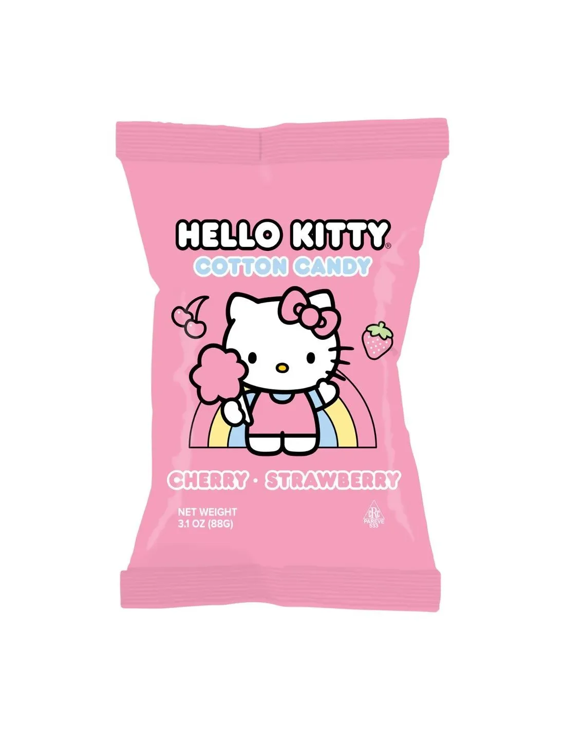 Hello Kitty Cotton Candy Cherry Strawberry è uno zucchero filato americano con deliziosi sapori di ciliegia e fragola . Questo dolcetto arioso si scioglie all'istante in bocca, sprigionando un irresistibile sapore dolce e fruttato. L'adorabile confezione a tema Hello Kitty lo rende un regalo perfetto per i fan dell'iconico personaggio di Sanrio. Ha una consistenza leggera e soffice tipica dello zucchero filato da luna park.