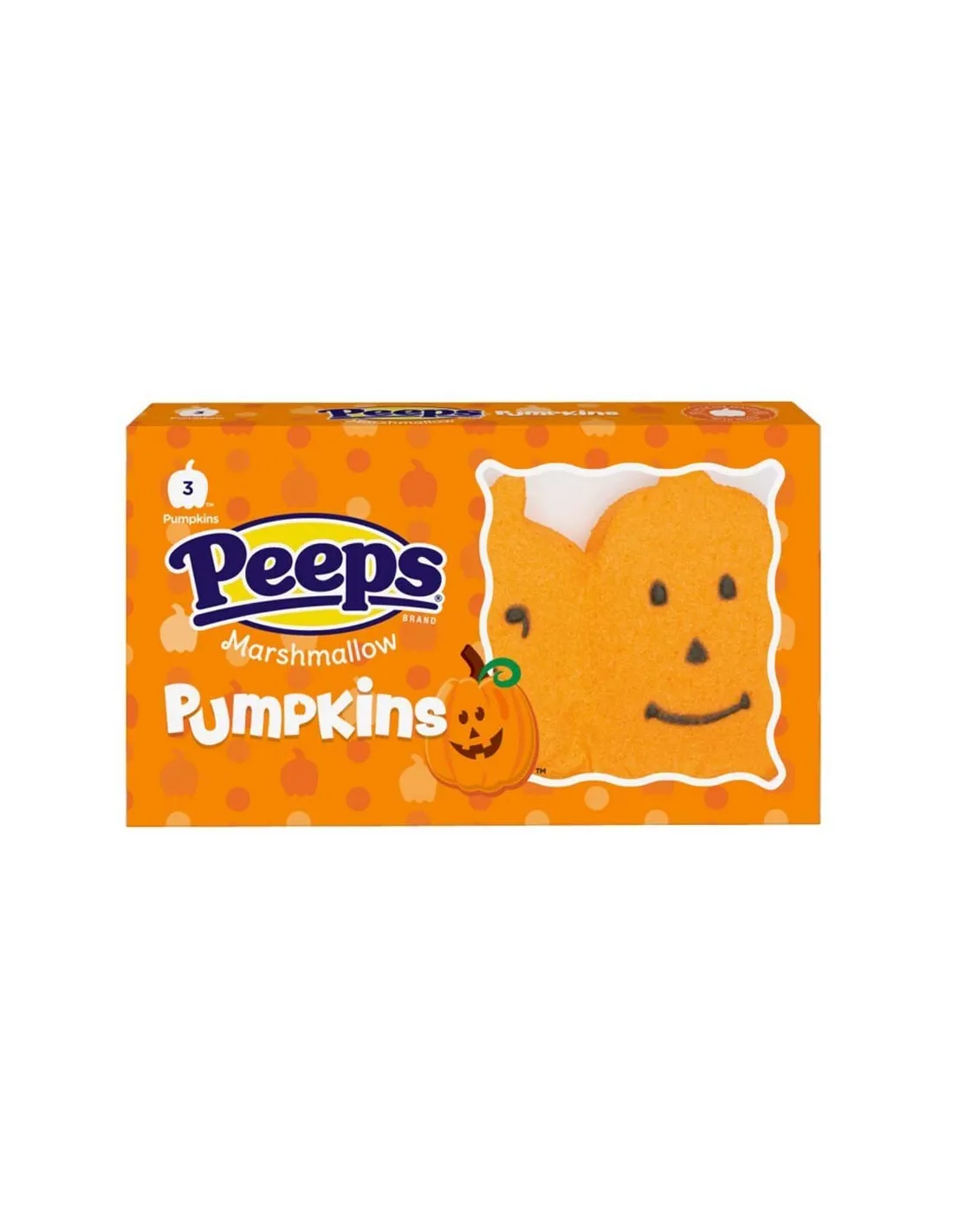 Vous n'avez jamais goûté un Marshmallow de la marque Peeps ? C'est le moment de tester cette version Halloween des Marshmallows Pumpkins de Peeps. Ces délicieux bonbons à la guimauve orange sont recouverts d'une fine couche de sucre qui leur a value un succès au pays de l'ongle Sam. Cette version est en forme de citrouilles pour célébrer comme il se doit Halloween. Chaque paquet contient 3 guimauves (42g).