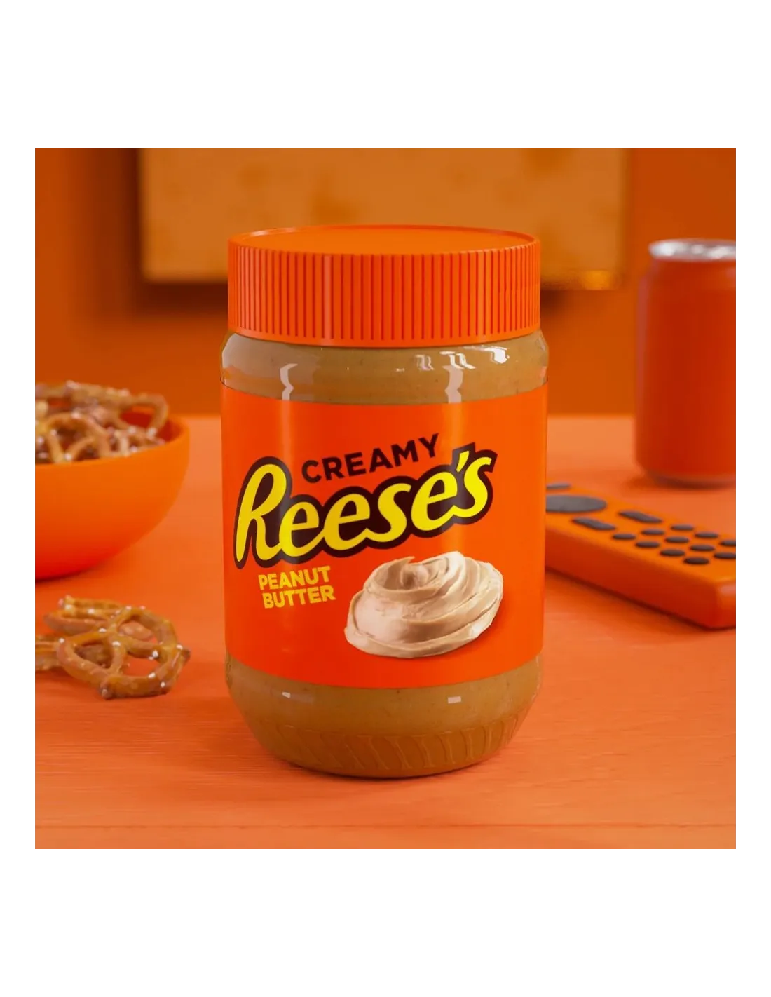 La pâte à tartiner crémeuse Reese's est une pâte fondante à base de beurre de cacahuètes. Idéal pour le petit déjeuner à l'américaine ou lors d'une pause collation, elle s'adapte également très bien dans la préparation de vos gâteaux. Le goût magique de la marque Reese's dans une crème onctueuse.