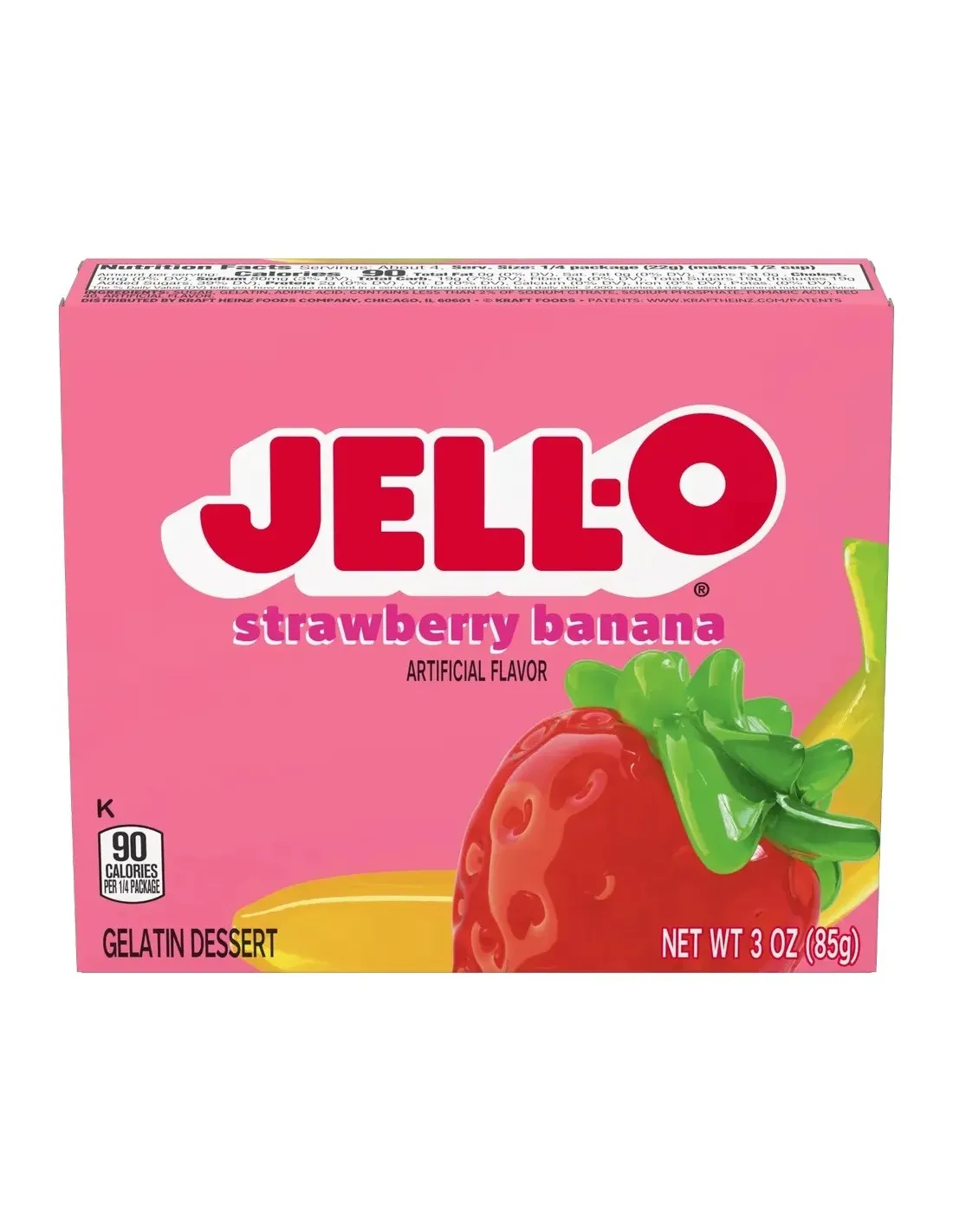 Découvrez une saveur irrésistible en bouche avec la Jell-O Gelée Strawberry-Banana au bon goût de la fraise et la banane. Dessert typique des États-Unis apparu dès le XVème siècle, la gélatine aux fruits s’invite dans votre cuisine ! Simple et rapide, la gelée JELL-O ravira les petits comme les grands. Riche et onctueuse, vous serez submergé par les saveurs irrésistibles de ce dessert alléchant ! Retrouvez un goût unique avec ce combo fraise banane avec cette préparation de gelée américaine.