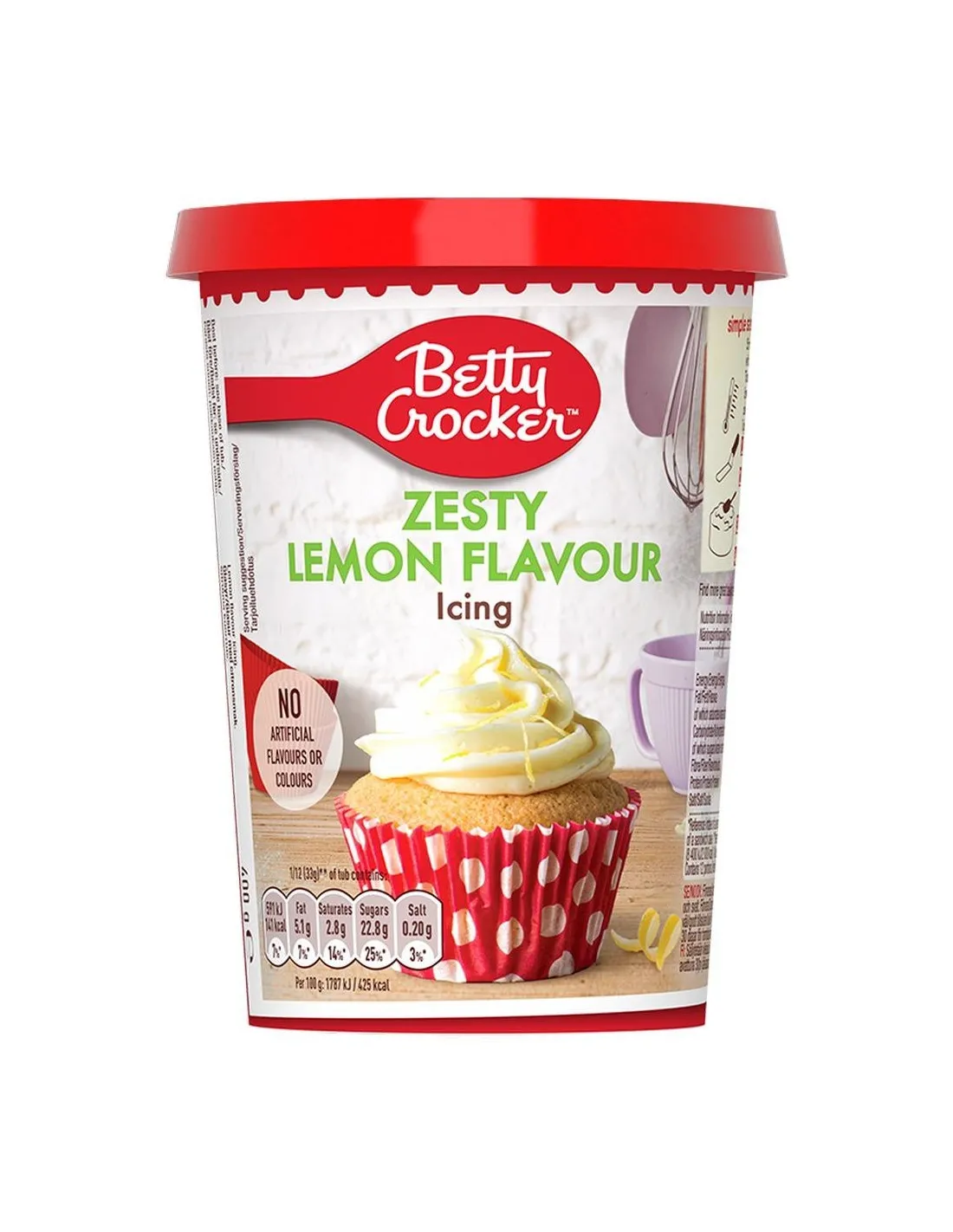 Pour obtenir une réalisation parfaite de votre gâteau américain, il vous faudra le glaçage Betty Crocker Zesty Lemon Flavour Icing. Ce glaçage typiquement US est au bon goût du citron acide. C'est la touche finale parfaite pour toutes vos préparations.