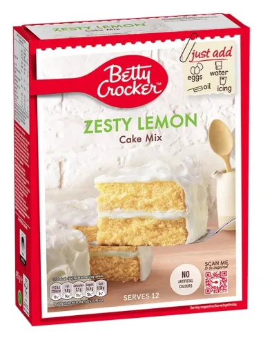 Cette Zesty Lemon Cake Mix incarne tout le savoir-faire de Betty Crocker, marque iconique des USA connue pour ses desserts faciles et gourmands. Idéale à agrémenter d’un glaçage, d’un coulis de citron ou de fruits frais pour un rendu digne d’une pâtisserie !