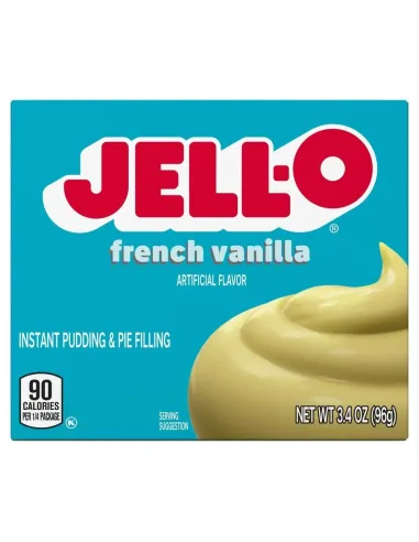Le Jell-O Instant Pudding & Pie Filling French Vanilla est une préparation instantanée conçue pour obtenir une crème à la vanille douce, riche et onctueuse. Il suffit d’ajouter du lait froid et de mélanger quelques instants pour que la préparation épaississe et atteigne une texture lisse. La saveur “French Vanilla” se distingue par un profil plus rond, plus crémeux et légèrement plus beurré que la vanille classique, rappelant les desserts lactés traditionnels.