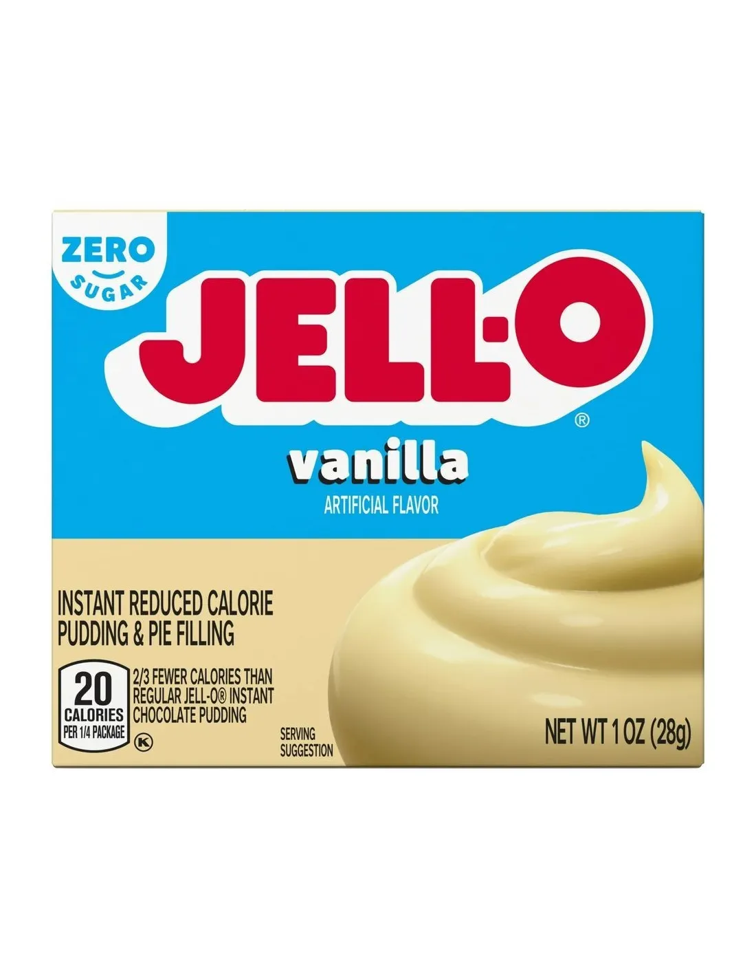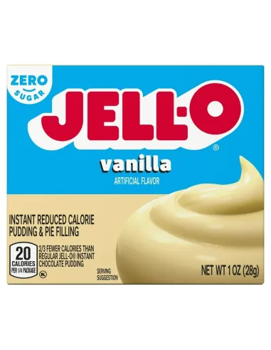 Le Jell-O Instant Pudding & Pie Filling Vanilla Zero Sugar est une préparation instantanée conçue pour obtenir en quelques minutes une crème à la vanille légère, douce et sans sucre ajouté. En mélangeant simplement la poudre avec du lait froid, la texture s’épaissit rapidement pour offrir un pudding lisse et stable, idéal pour des desserts rapides ou des recettes sans cuisson.