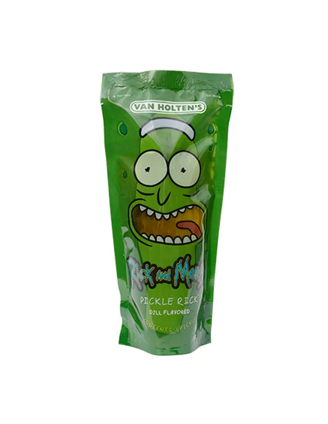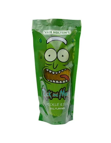 Qui osera tester le cornichon XXL Rick & Morty Pickle Rick pour sa collation, en sachet individuel de la marque Van Holten's made in USA? Il est également indispensable lors de la préparation de vos hot-dogs, bagels, burgers… Une édition spéciale pour la célèbre série Rick & Morty avec ce pickle au bon goût de l'aneth.