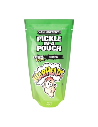 Le crossover le plus fou des États-Unis est arrivé ! Vous pensiez avoir tout vu (et tout goûté) en matière de snacks américains ? Préparez-vous à un véritable choc pour vos papilles ! Le Van Holten's Warheads Extreme Sour Pickle est le fruit d'une collaboration totalement improbable entre deux légendes : le roi du cornichon croquant Van Holten's et le maître incontesté de l'acidité extrême, la marque Warheads.