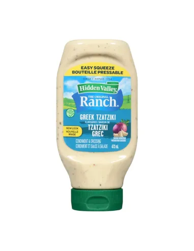 Vous connaissez sûrement la sauce Original Ranch de la marque Hidden Valley. Maintenant vous pouvez également tester la version Greek Tzatziki. Idéale pour venir assaisonner votre salade ou vos légumes frais, la sauce Hidden Valley Greek Tzatziki est un parfait complément.