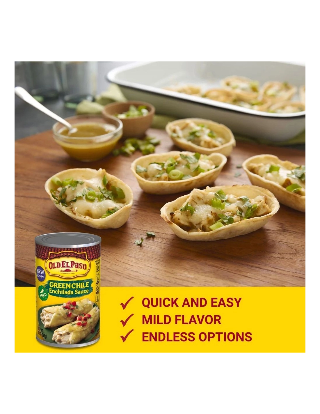 Apportez une touche de fraîcheur acidulée à vos plats avec la Old El Paso Green Chile Enchilada Sauce Mild ! Une sauce onctueuse aux piments verts doux qui enrobe vos tortillas d'une saveur délicate et parfumée, sans brûler le palais. Importation US, livraison sécurisée garantie !