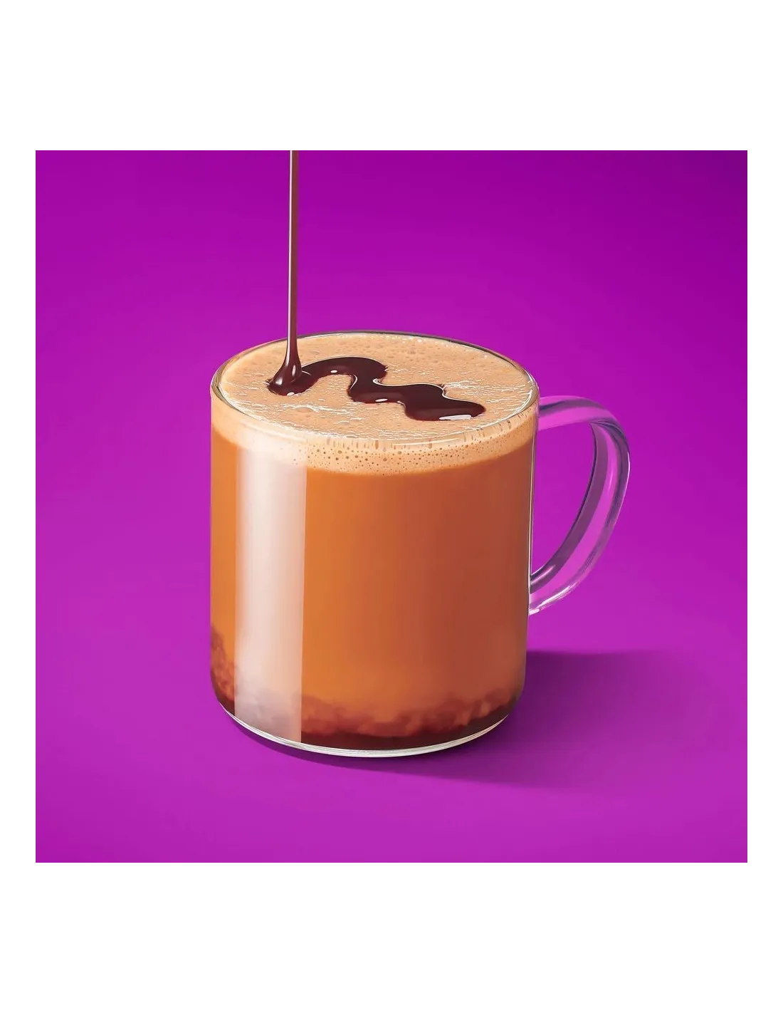 Sirop de glucose-fructose, sirop de maïs, eau, poudre de cacao, sucre, épaississant (E415), sel, vanilline, arôme artificiel. Ce produit contient des OGM.