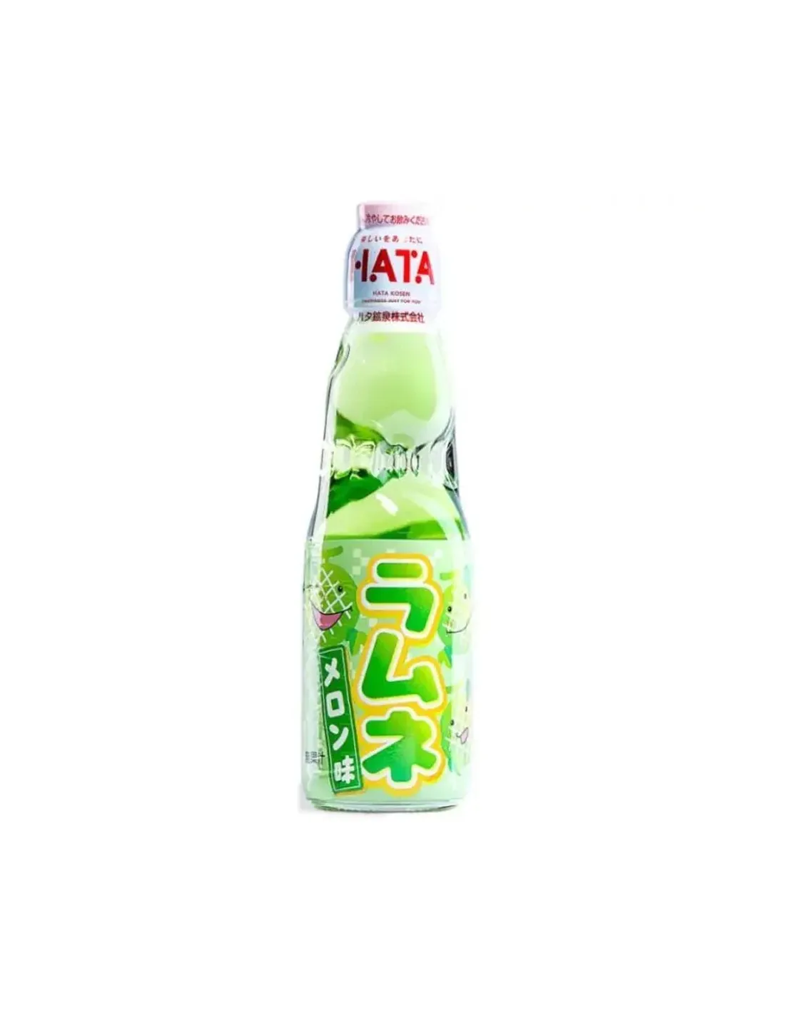 Le Ramune Melon de Hata Kosen est une boisson gazeuse japonaise à la saveur douce et fruitée de melon, servie dans sa mythique bouteille à bille !