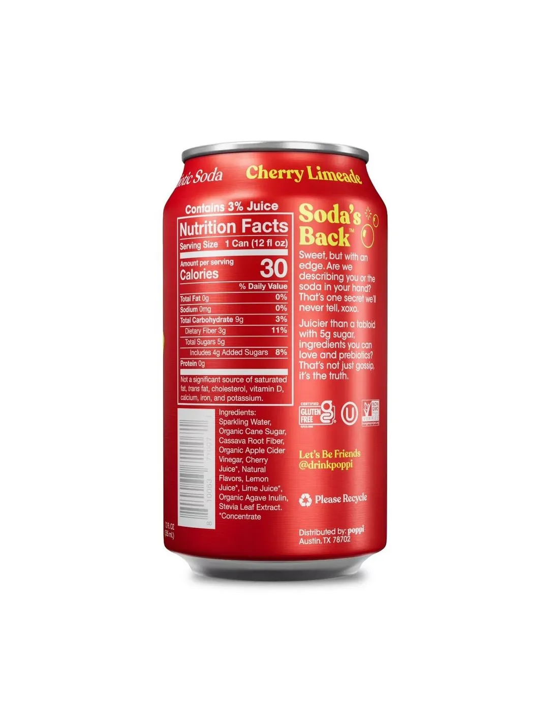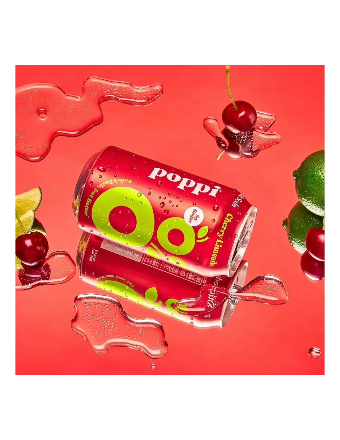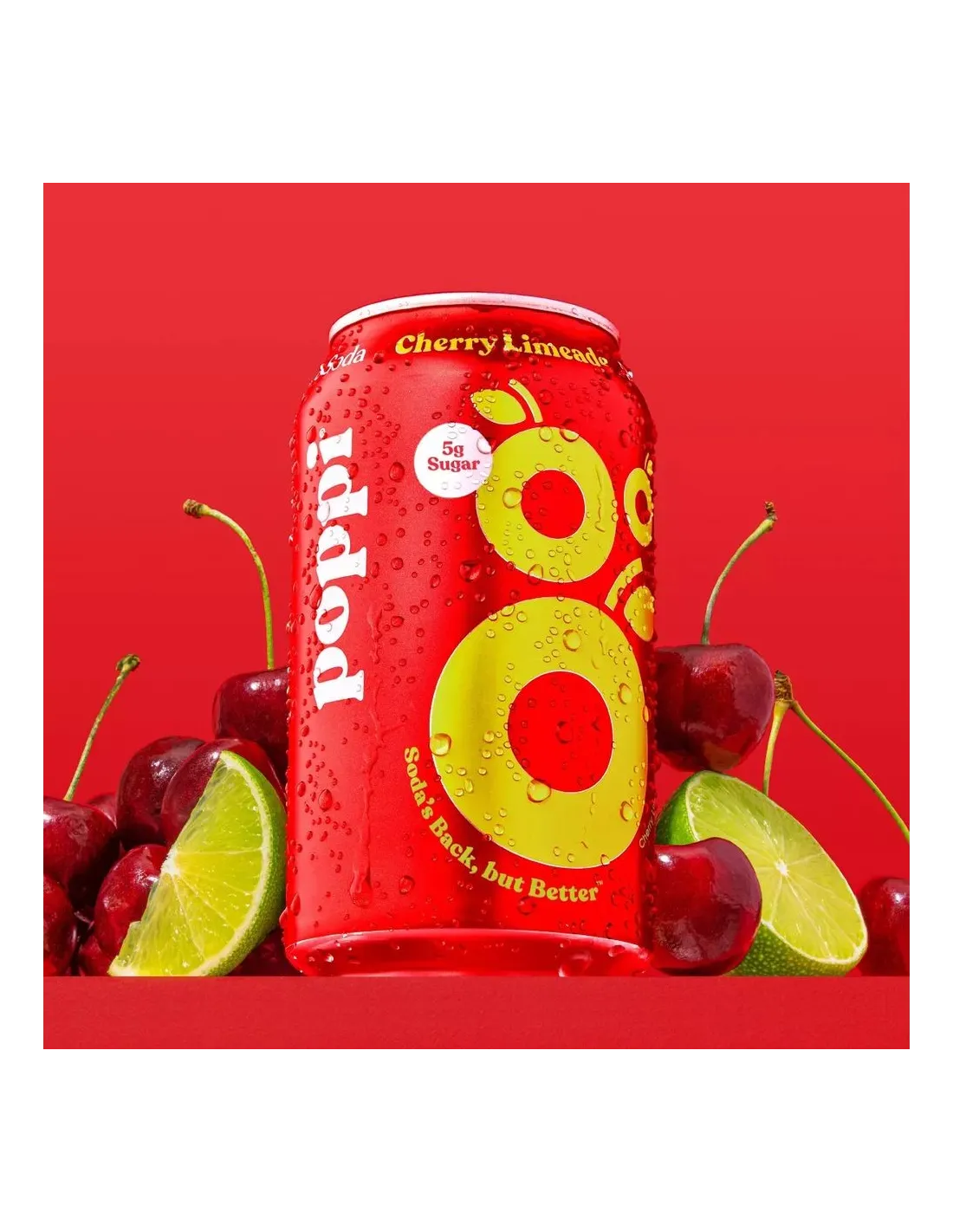 Poppi Prebiotic Soda Cherry Limeade, c’est la boisson fun, fruitée et pétillante façon USA ! Le parfait équilibre entre cerise juteuse, lime acidulé et prébiotiques naturels.